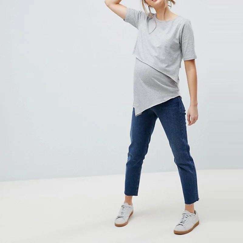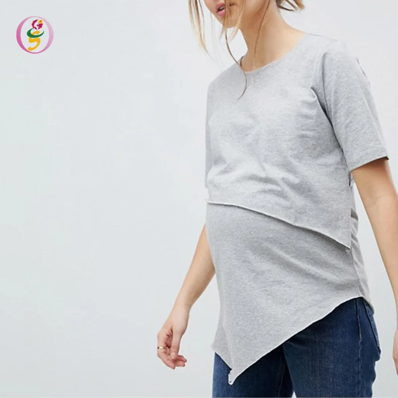 Breathable Maternity Nursing Short Sleeves Asymmetric Tops Double Layer Design Breastfeeding Tops
